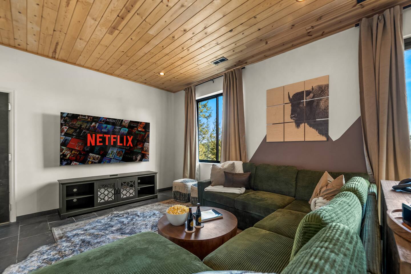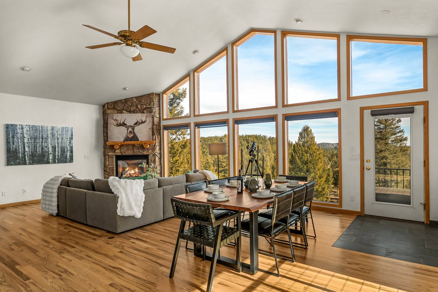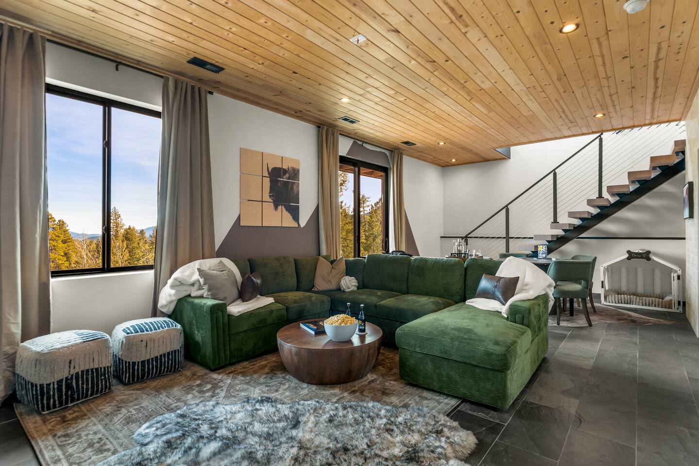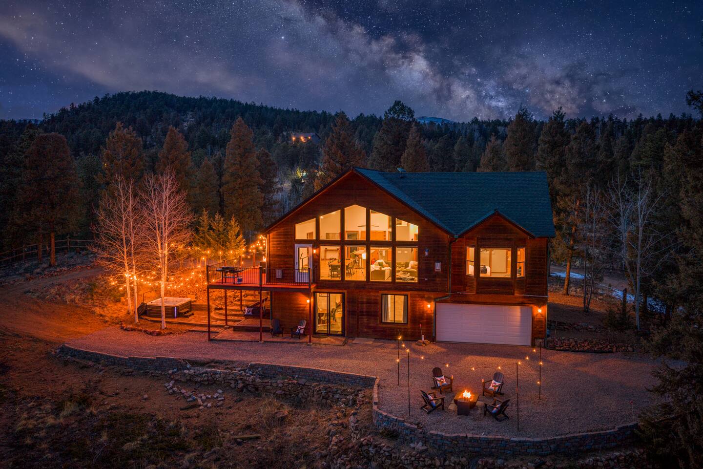 Welcome to Stargazer Lodge, a luxe three-acre mountain sanctuary designed for elevated relaxation, meaningful connection, and unforgettable nights beneath a brilliant canopy of stars. This private retreat blends refined comfort with sweeping mountain vistas and endless woodland serenity. By day, explore nearby hiking trails or unwind on the expansive deck overlooking panoramic views. By night, the sky transforms into a breathtaking celestial display.